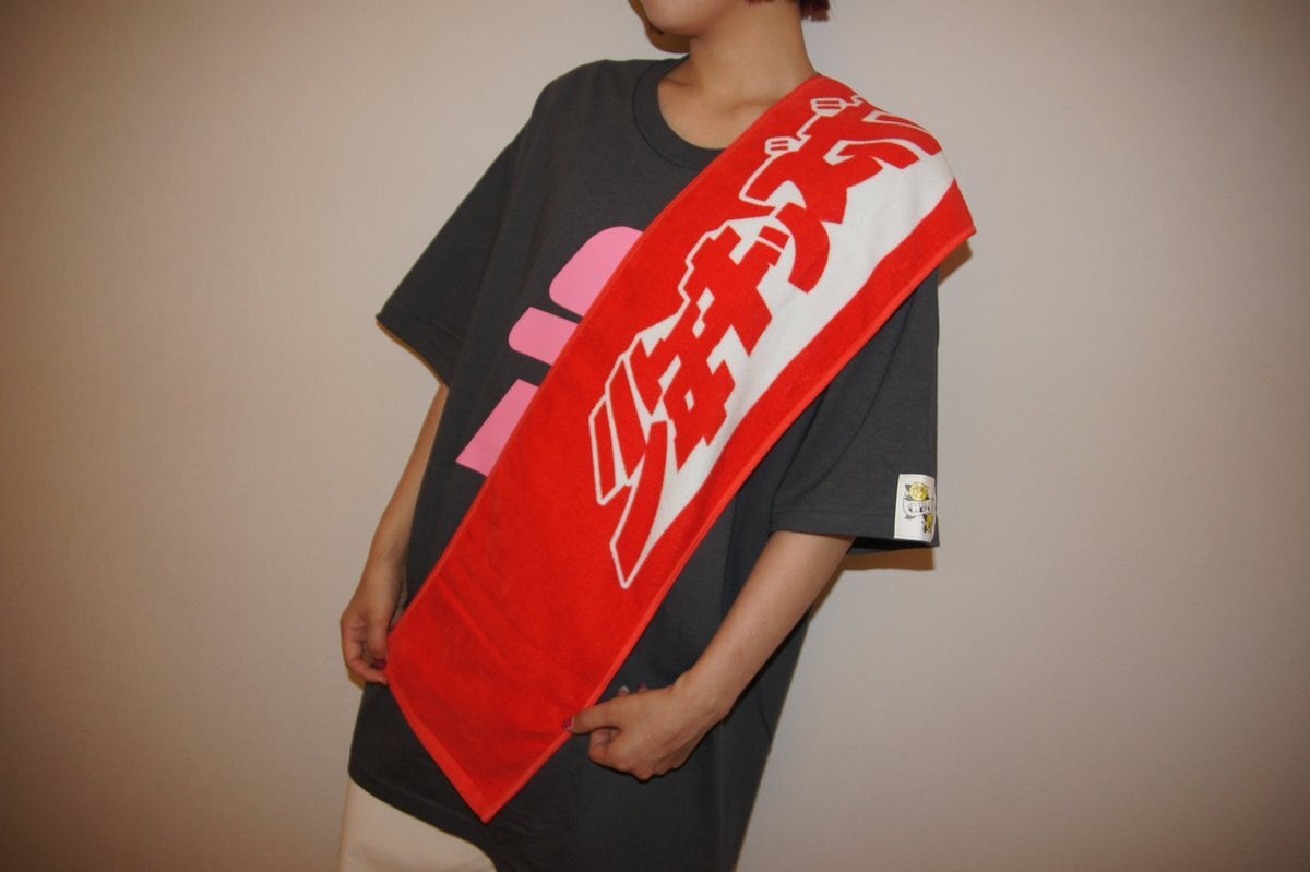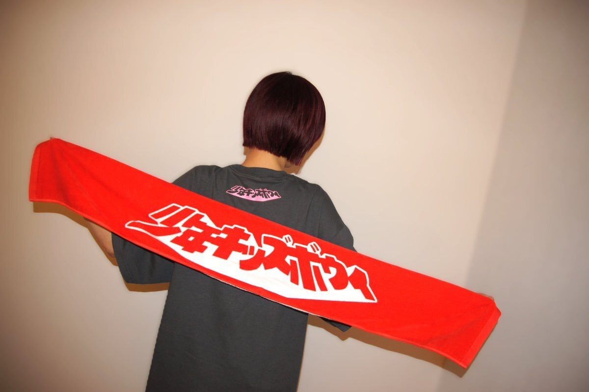 少年キッズボウイのロゴがデザインされたマフラータオル