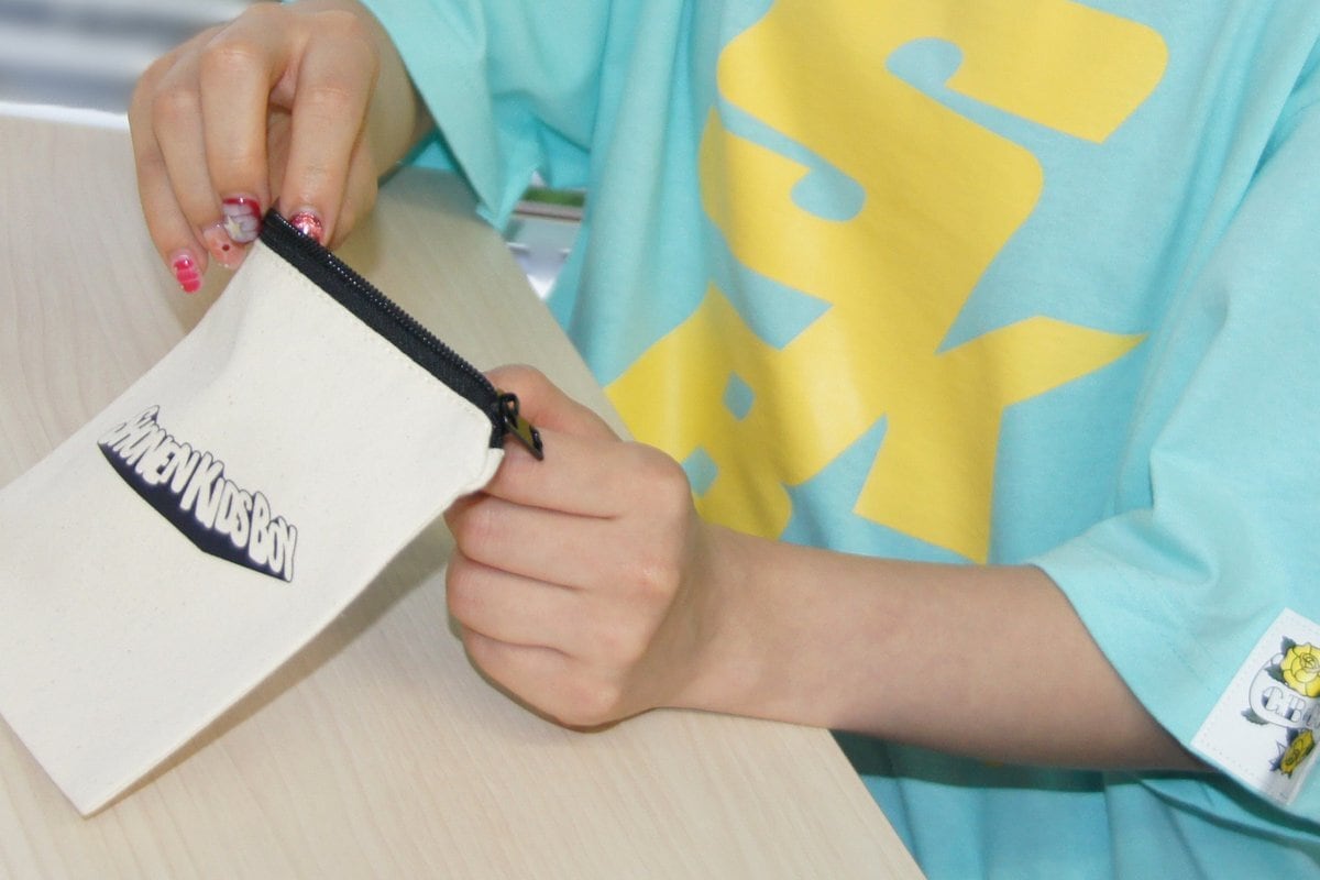 英語バージョンのロゴがプリントされたポーチ。